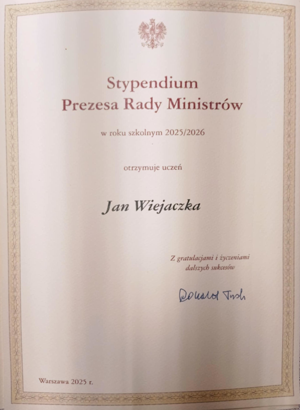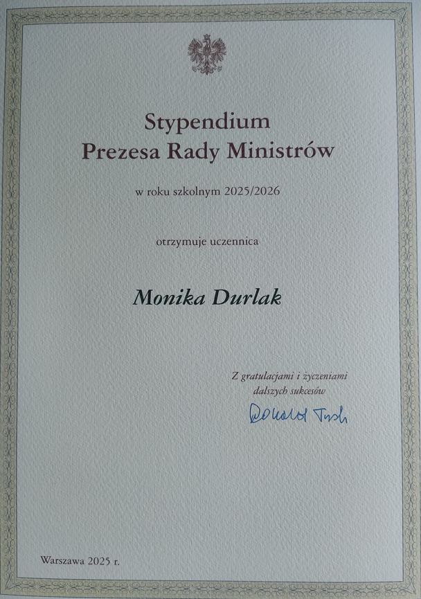 Stypendium Prezesa Rady Ministrów dla najlepszych uczniów ZSO w Bobowej