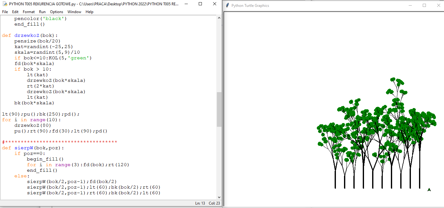 (rekurencja, fraktale, płatek Kocha, trójkąt Sierpińskiego, drzewa binarne)